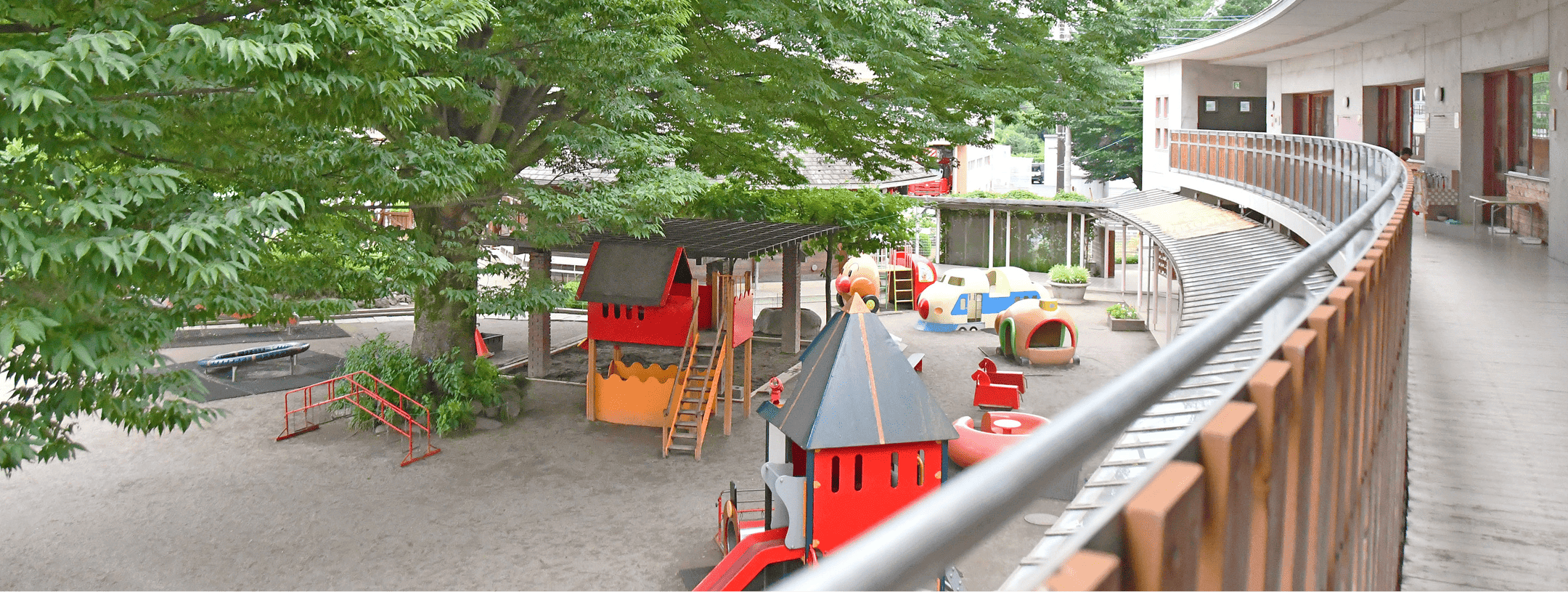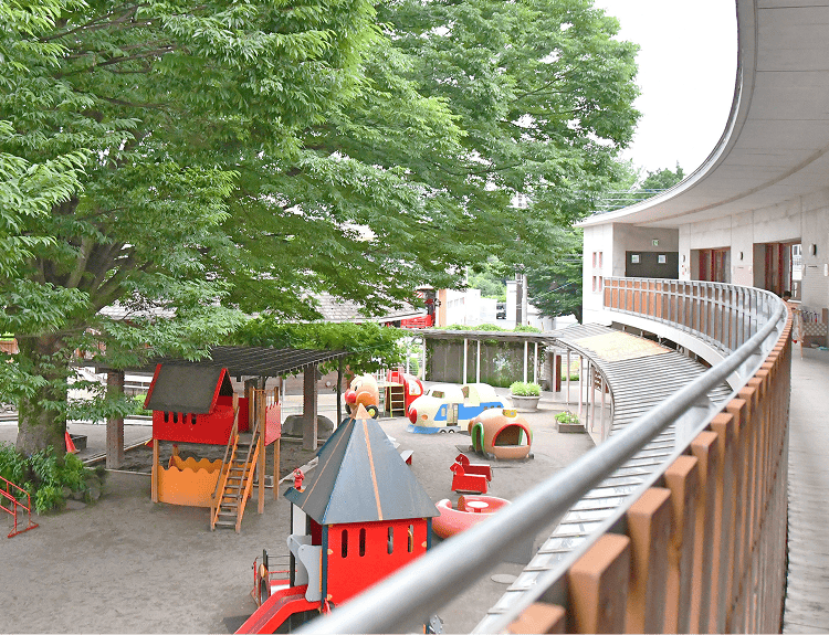 子ども達は広い園舎、園庭でのびのびと過ごしています。